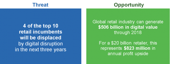 Perhaps most important, you will avoid being part of the 40 percent of leading retailers that are likely to be displaced by digital disruption. Instead, you'll be positioned to capture your share of the $506 billion in digital value that's there for the taking through 2018.