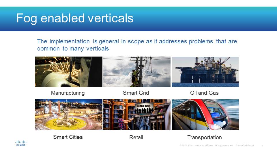 Fog computing addresses problems that are common to many verticals.