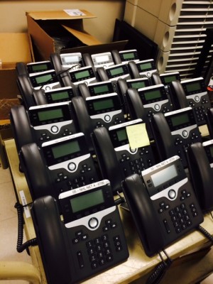Each team table had 2x Cisco IP phones that could ring both lines. In all, 6x CAT 5E cables were run to each table with a breakout box under each table. These cables were pre-made so that they could just be rolled out in bundles. This allowed for 2 phones, 2 internet, 1 Draft network and a spare for each table.