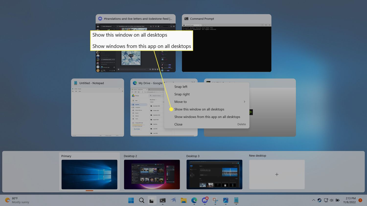Here's how to use one app across multiple desktops in Windows 11: