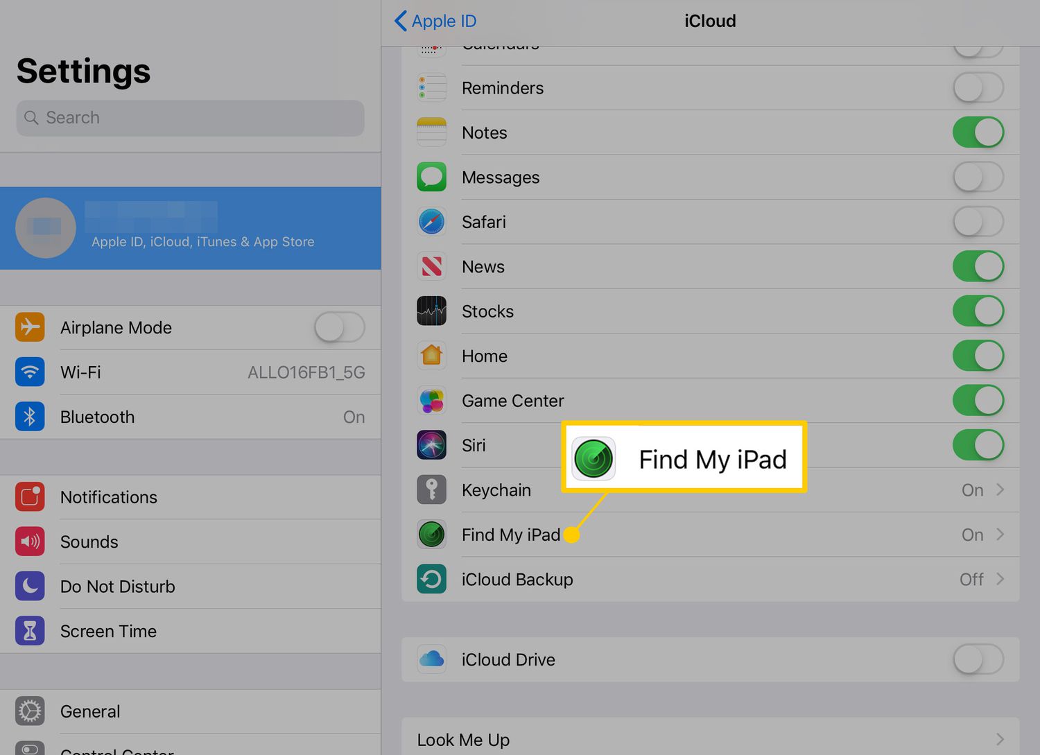 - Go to Settings > your name > Find My, and then toggle the Find My iPad switch to turn the feature on and off.