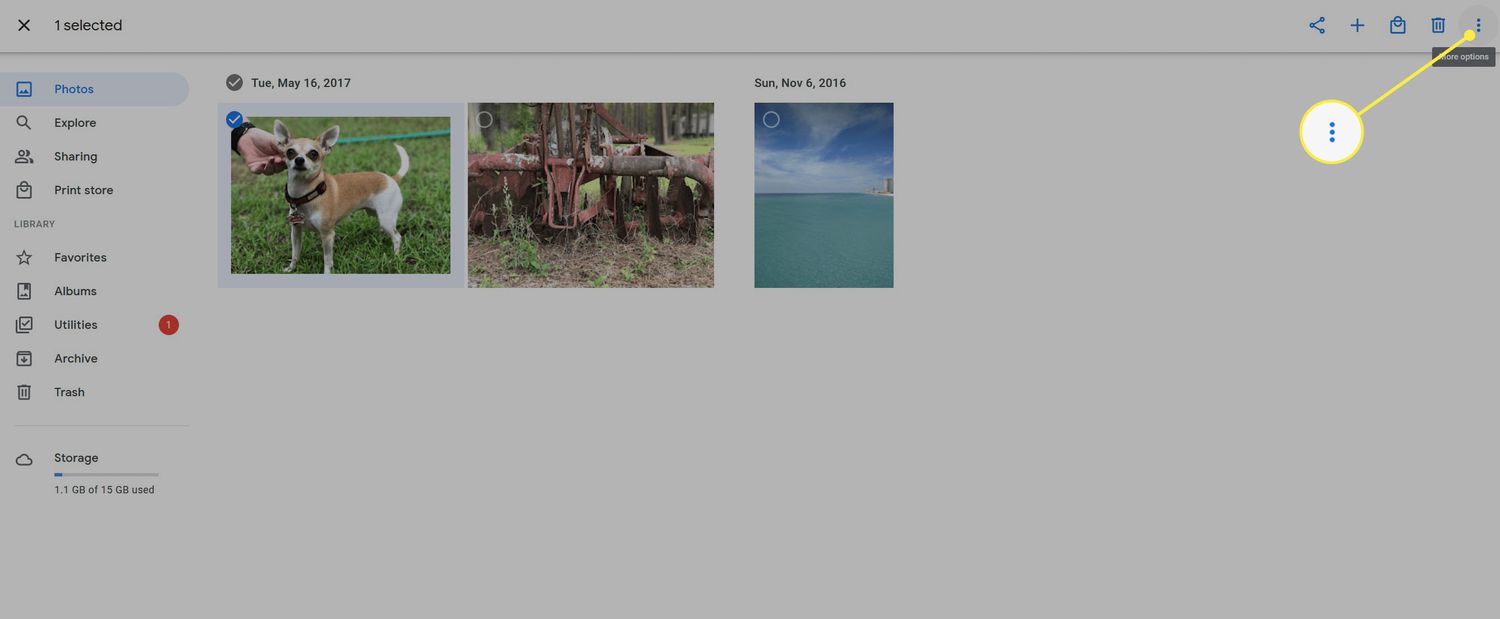 You can move Google Photos to your computer's hard drive by downloading them from the website. Sign in to Google Photos, and then hover your cursor over the ones you want to move and select the checkbox. Once you've highlighted all of the items you want, click menu > Download.