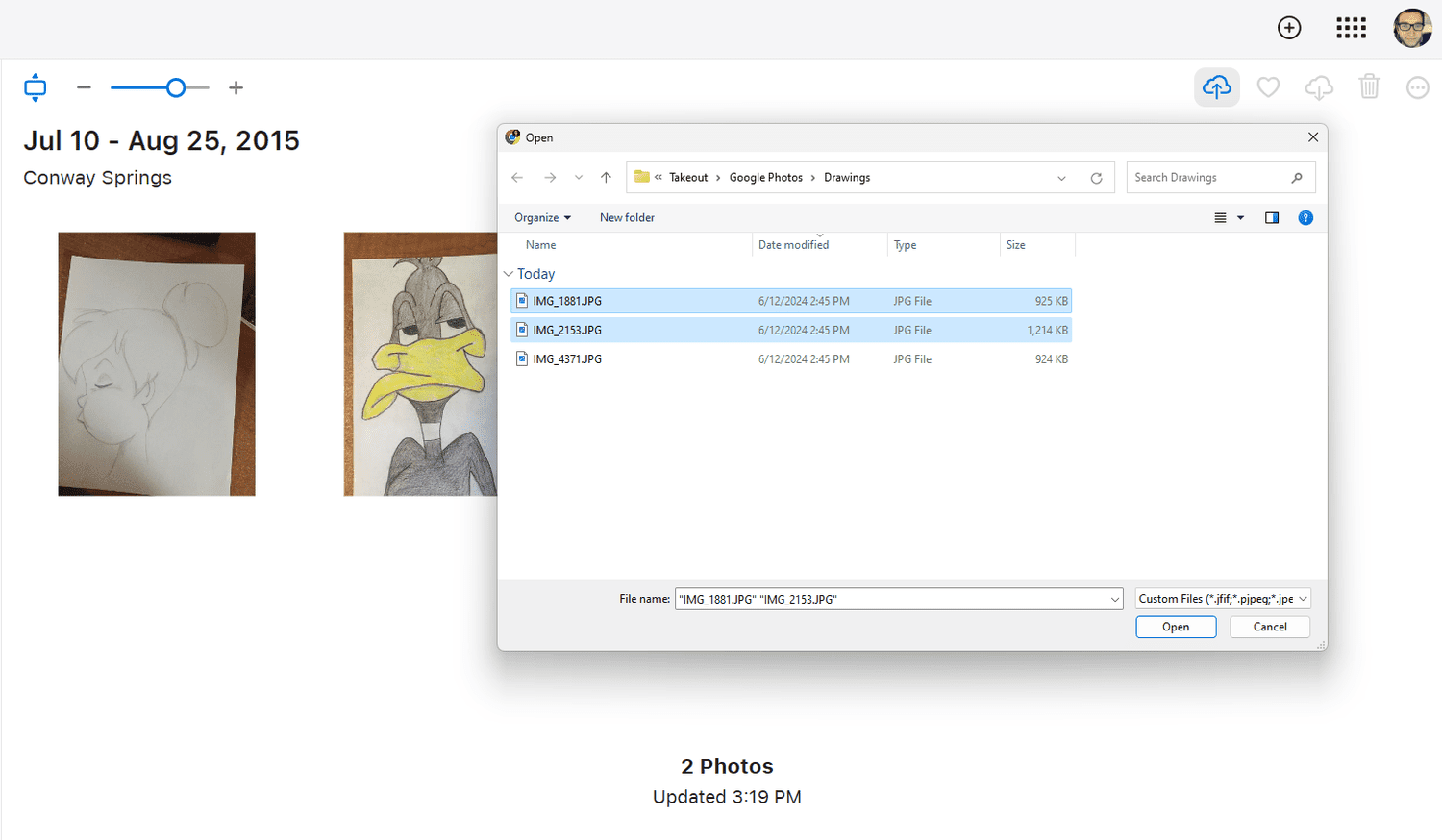 Find the folder you exported your Google Photos items to and then choose what to import into iCloud.
