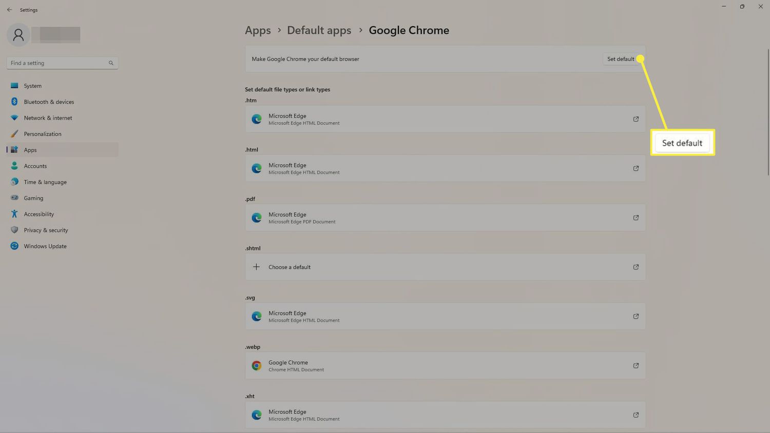 - Go to Start > Settings > Apps > Default apps. Select the web browser you want, then select Set default.