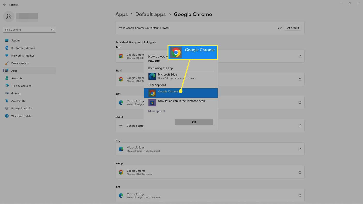 Install Chrome on Windows 11, then go to Start > Settings > Apps > Default Apps > Google Chrome > Set default.