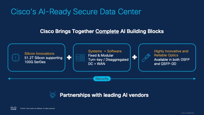 The exponential growth of AI is reshaping data center requirements, driving demand for scalable, secure, and programmable networks. Enterprise customers are evaluating their current infrastructure to support rapid AI deployment and scalability, often upgrading to be AI-ready and securing workload communications such as GPU or CPU. This shift requires integrating AI-ready networking with distributed security policies as users, applications, and data span public and private clouds, colocation centers and more. Our customers are using Cisco Nexus 9000 Series Switches to run AI/ML workloads today over 400G network infrastructure. With generative AI adding complexity, we are seeing the customer need for a simple and secure infrastructure for performance monitoring and security across diverse environments, with 800G-based design plans in many data center buildouts.