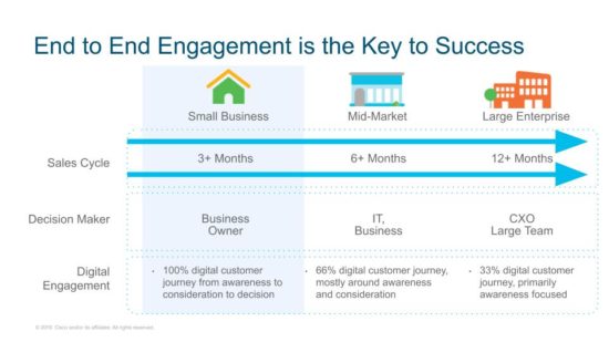● A focus on the digital journey -Although all businesses are comfortable with researching solutions online, SMBs are actually more comfortable transacting online. They tend to find, research, evaluate, and eventually buy everything from email to Quickbooks to productivity apps -all with an end-to-end digital journey.