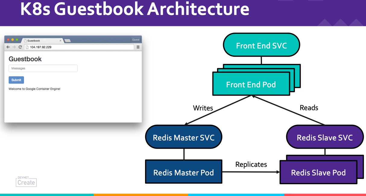 Instead of the traditional K8s Guestbook that uses three services and six persistent containers: