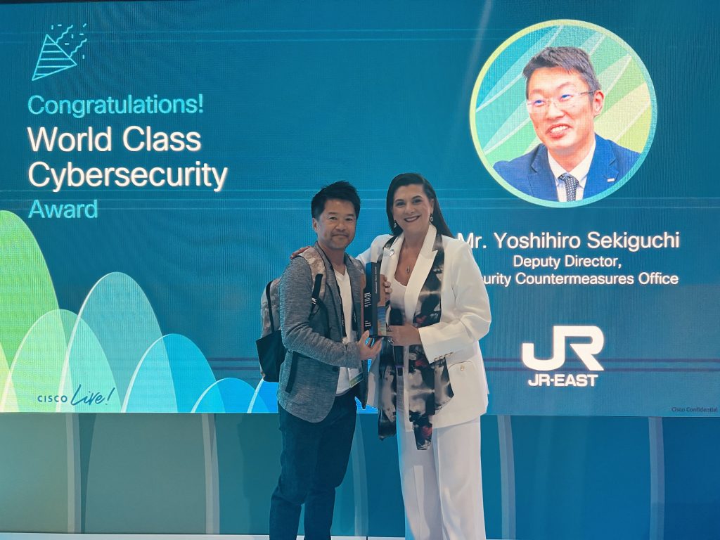 This award is presented to a customer who has partnered with Cisco Services to successfully strengthen its security and proactively protect and defend its IT infrastructure. The winner is East Japan Railway Company, which needs to protect multiple systems including station staff terminals, networks, and ticketing systems. Through a combination of Cisco security products and Cisco CX the company has experienced no outages due to security issues this year. Yoshihiro Sekiguchi, Deputy Director of the Security Countermeasures Office of the ICT Infrastructure Headquarters, and his team have implemented efficient SOC operations with 250 billion sessions and 400 billion records and reduced the time to prepare reports required by government ministries.