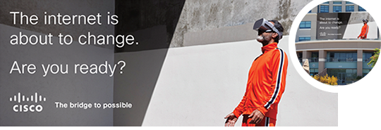 We are running a 'teaser' campaign throughout Cisco and in major business and industry publications to generate a buzz amongst our employees, our customers, and the world around "The Future of the Internet is coming -Are you ready?". Maybe you've seen it. If not, here it is: