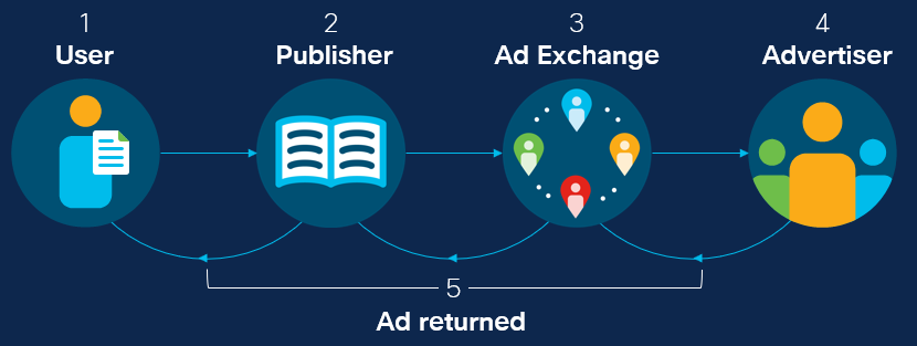 - The winning bid is passed back to the publisher, who displays the ad to the user.