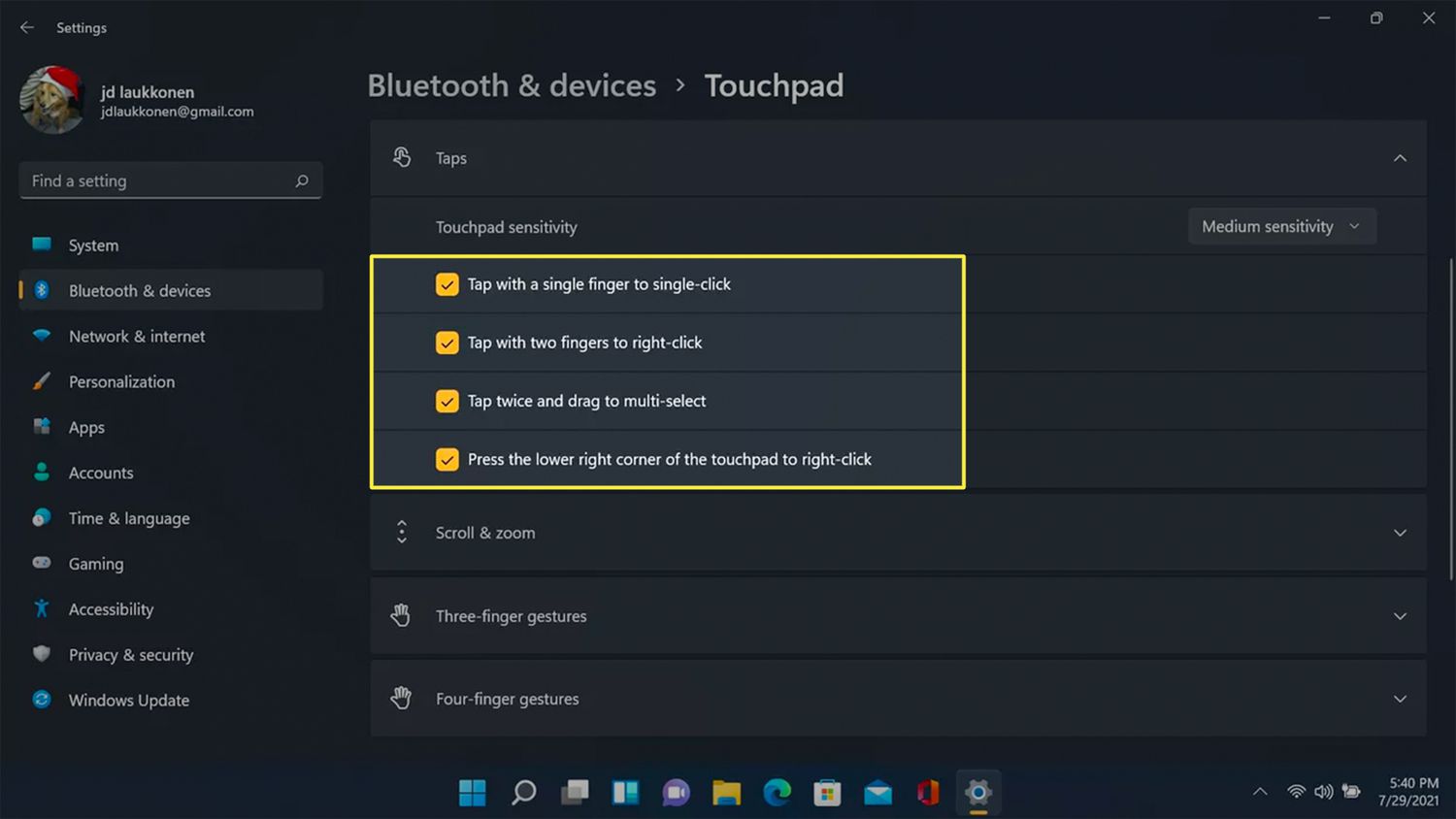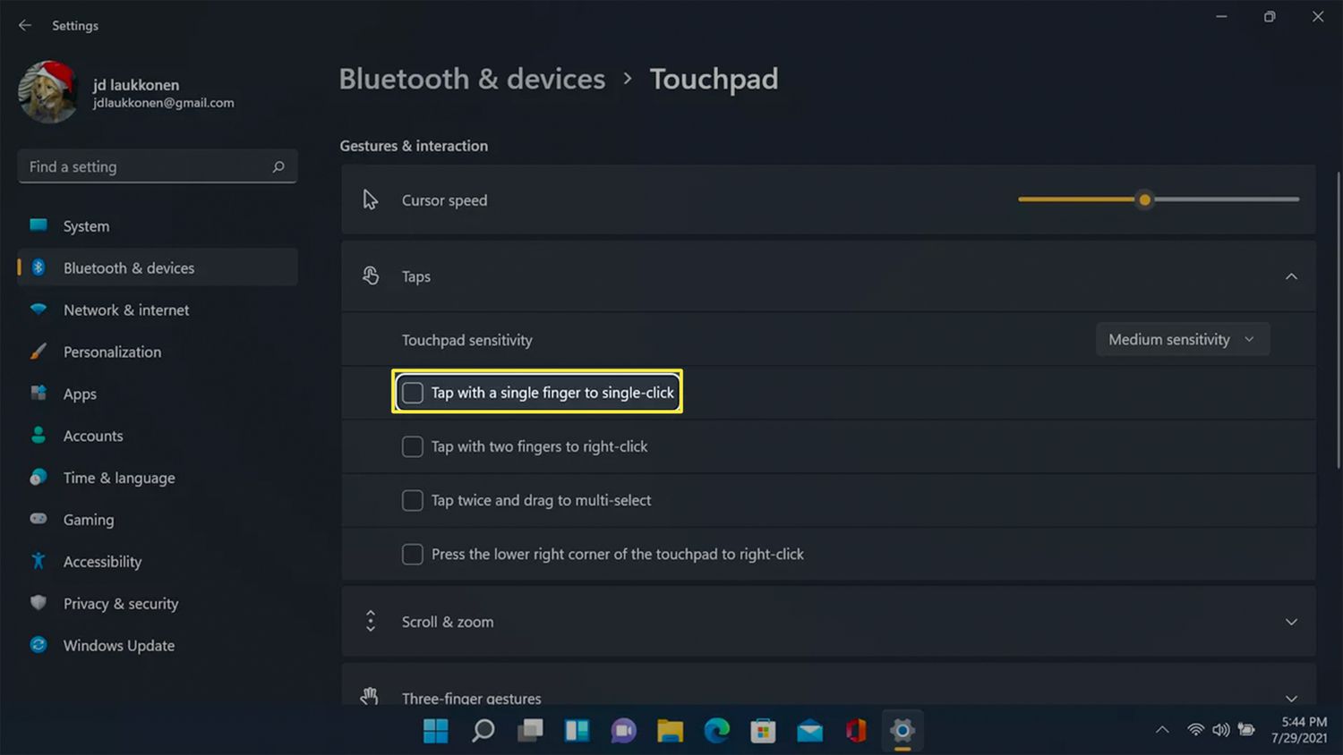Navigate to Settings > Bluetooth & devices > Touchpad.