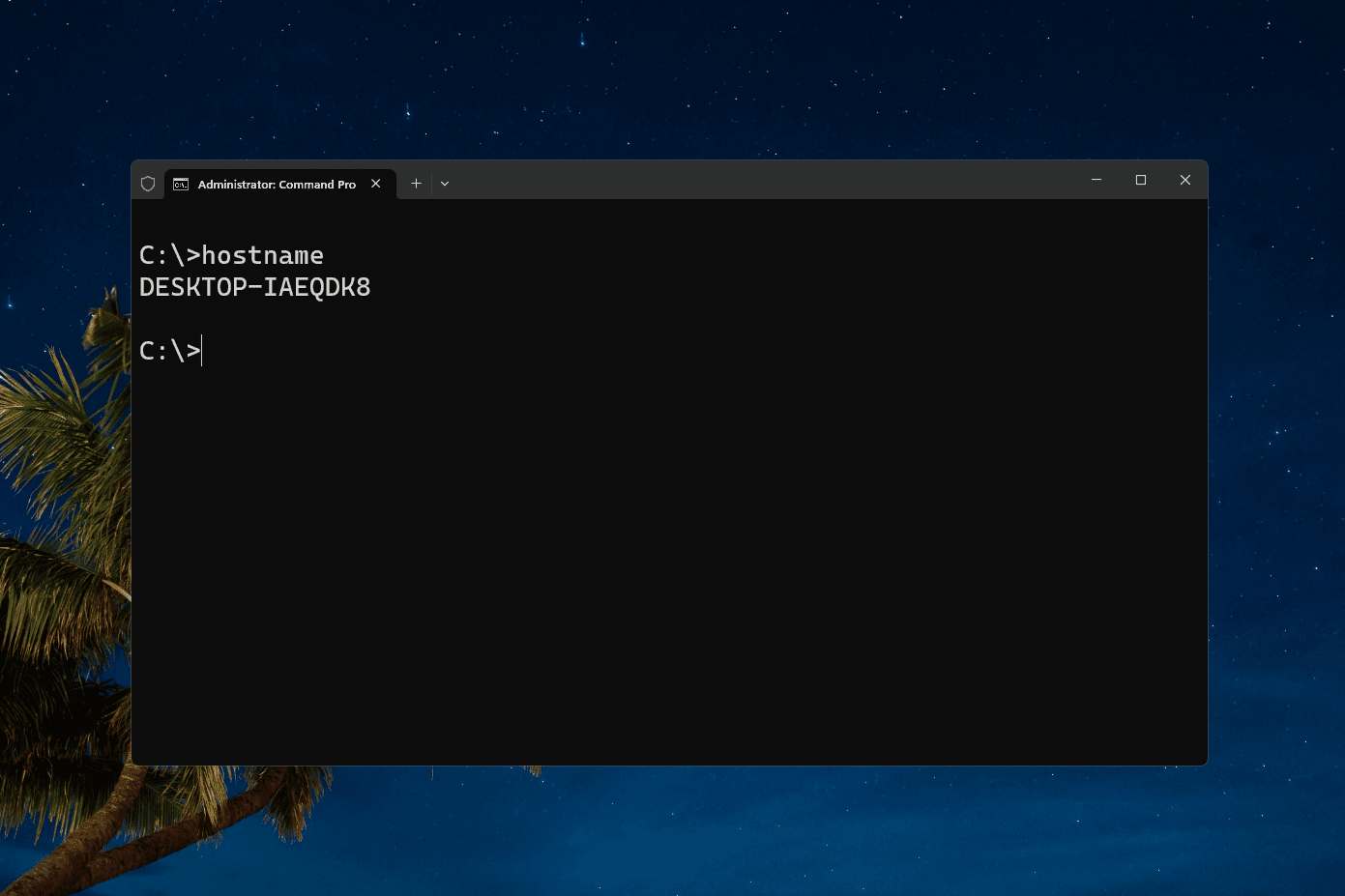 Executing hostname from the Command Prompt is the easiest way to show the hostname of a computer.