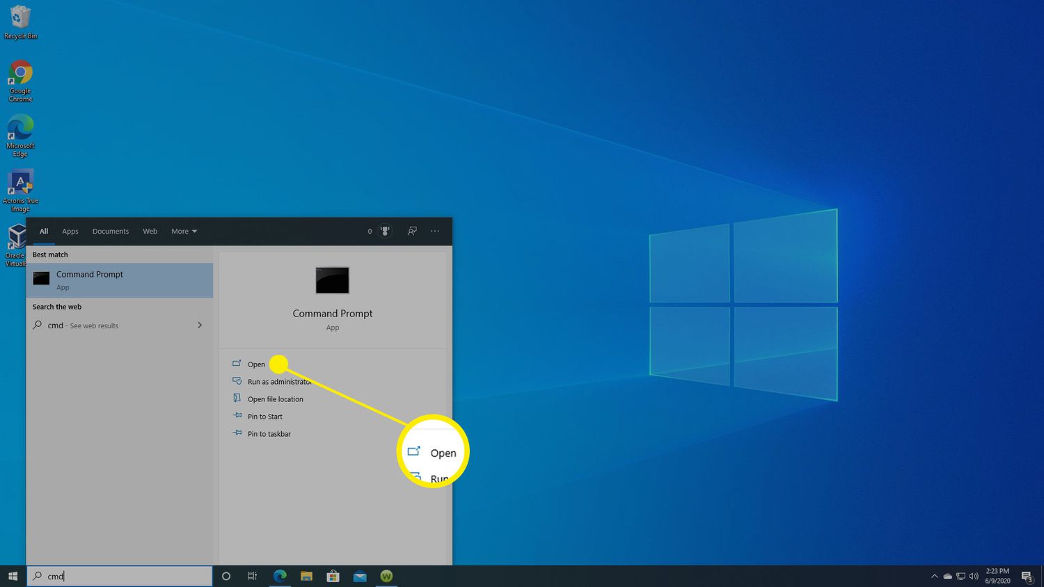 Open a web browser and enter the IP address listed in the ipconfig results for the Default Gateway. You'll see the login window for the router. If this is the first time you're logging into the router, the administration ID is usually admin, and the password is blank. You should see the Wi-Fi SSID and the Wi-Fi passkey either on the main router window or under the Wi-Fi menu.