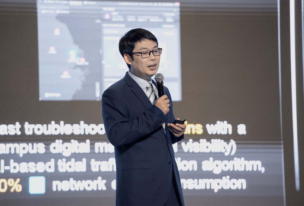 Shawn Zhao, President of the Campus Network Domain, Huawei's Data Communication Product Line, delivering a speech