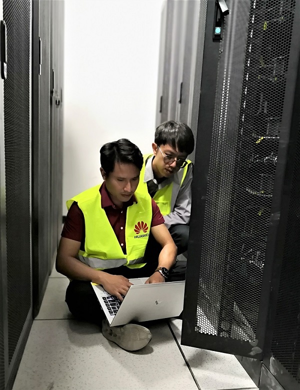 Huawei employees provide technical support in the Vientiane-Vangvieng Expressway equipment room.