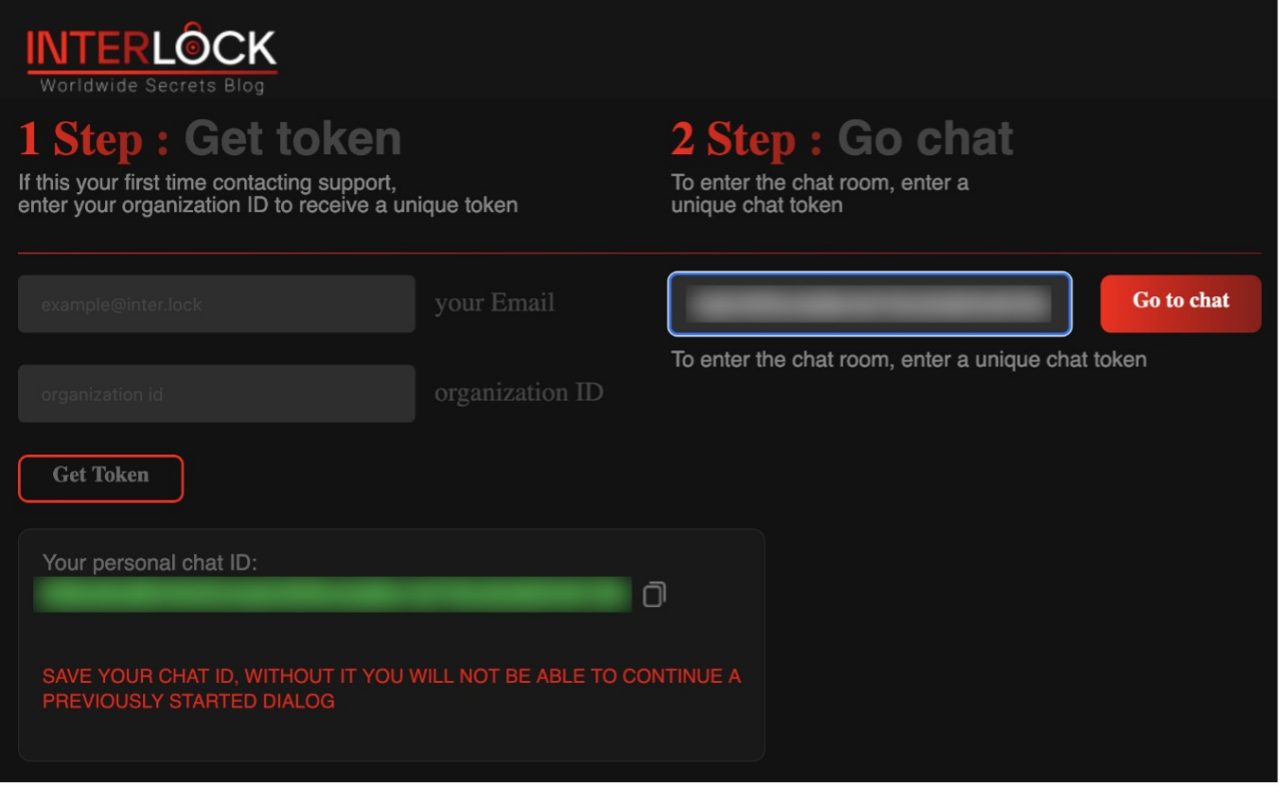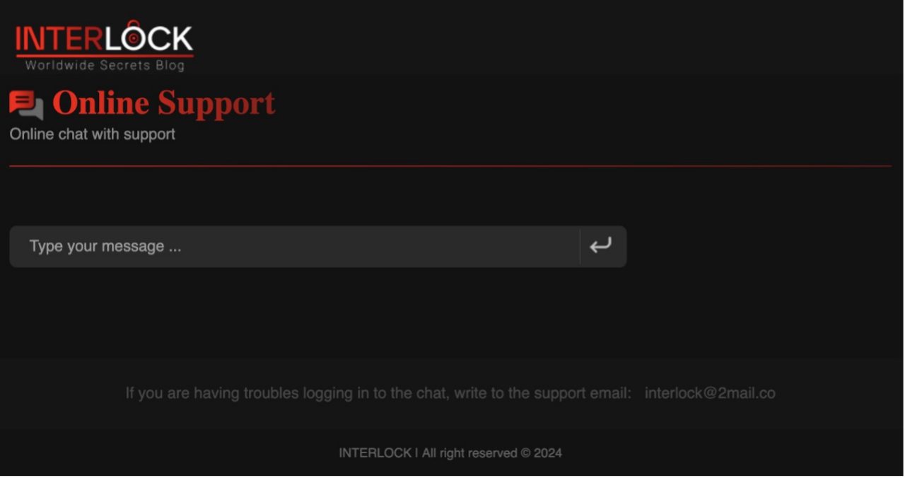 Figure 1: Login screen of the Interlock ransomware's negotiation site