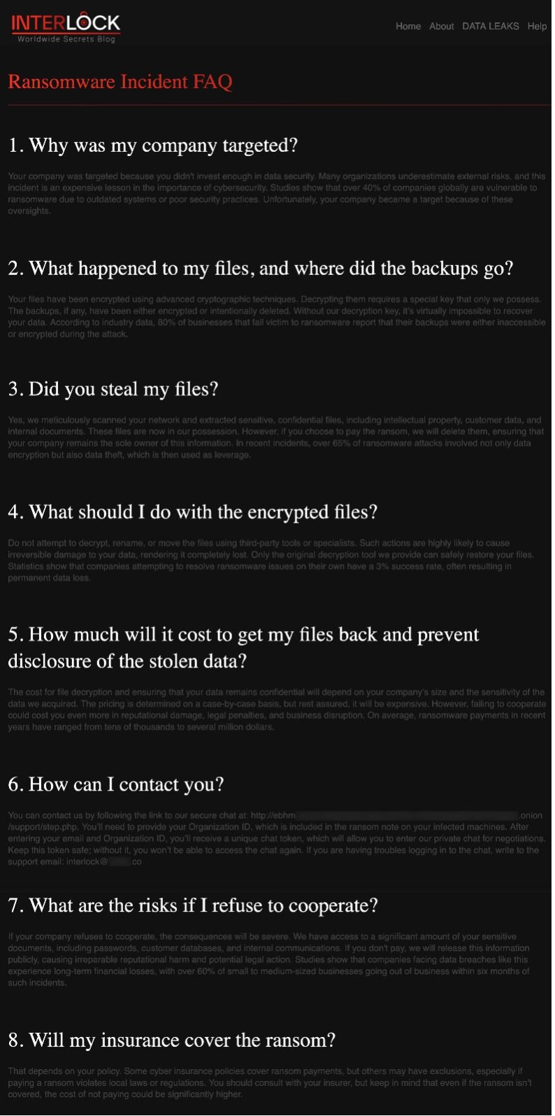 Figure 9: "Help" page on the Interlock ransomware's TOR site