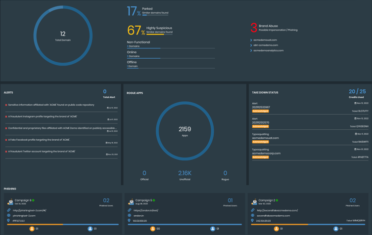 To defend against today's risks, organizations need to continuously monitor their external attack surface. This helps them to early identify and remediate vulnerable, internet-facing exposed assets, and detect and reset compromised credentials. They also need to quickly discover and takedown domain-infringing websites, rogue apps, and fake social media accounts, as attackers use these to capture credentials or spread false information about the organization or its products.