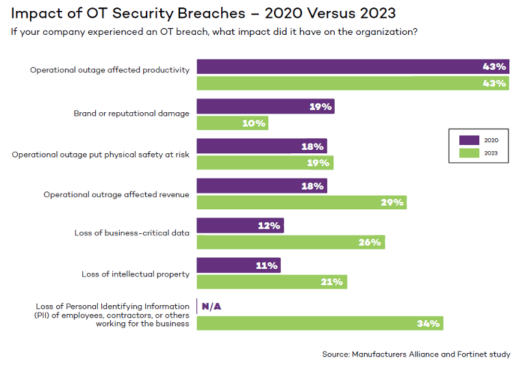 Although cybersecurity has become a priority at many manufacturing companies, risks have increased at the same time. To better understand how companies are addressing heightened risks, Manufacturers Alliance and Fortinet partnered to study the strategies companies are using to cope with the new threat landscape, the state of collaboration between IT and operational technology (OT), the tactics that have promise, and the barriers to progress. Building on a related 2020 study, the 2023 study shows where companies have made progress and where they may have stalled over the last three years.