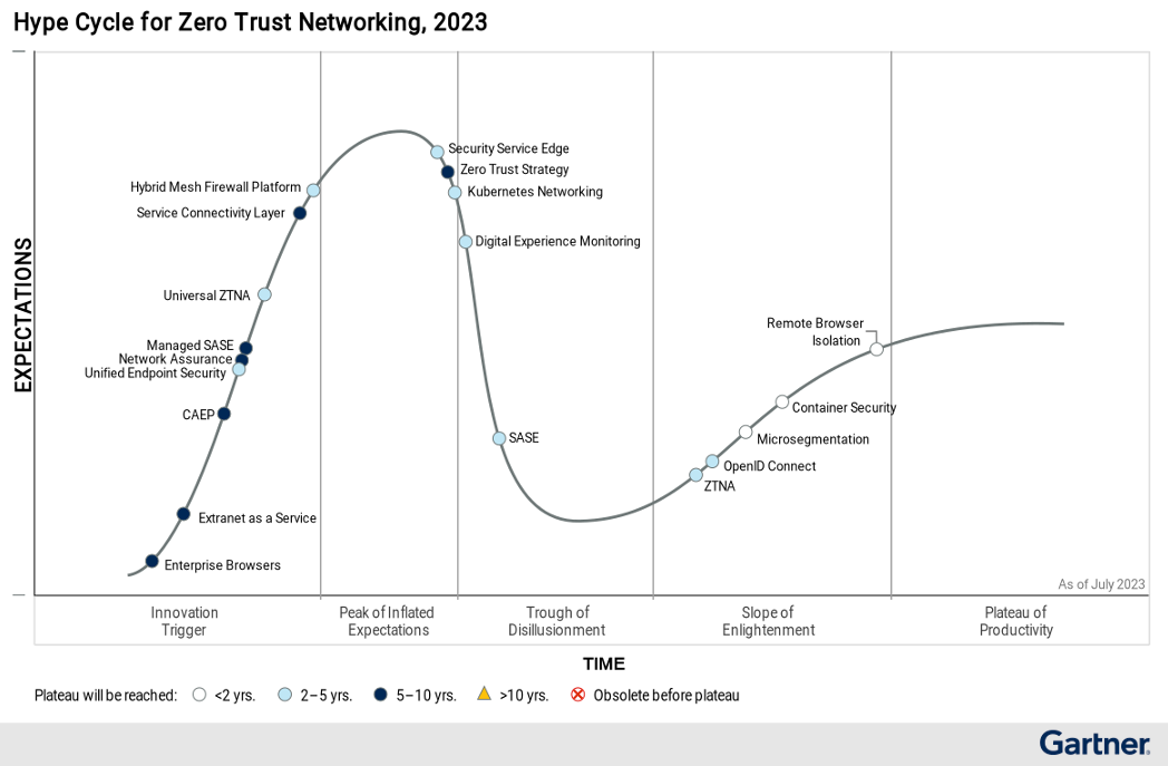 Figure 1: Gartner Hype Cycle for Zero Trust Networking, 2023