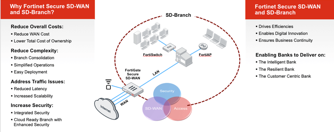 Fortinet Secure SD-WAN and SD-Branch fortify branch network security, making it challenging for adversaries to exploit vulnerabilities. By integrating networking and security into a centralized system, they offer a robust defense mechanism, ensuring business continuity and risk reduction across diverse environments.