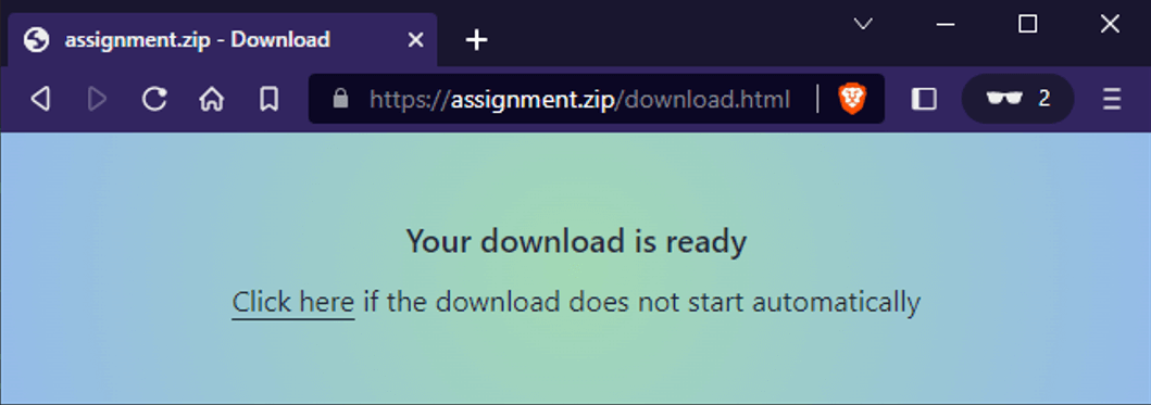 Visitors automatically get redirected to download a ZIP archive containing clean files.