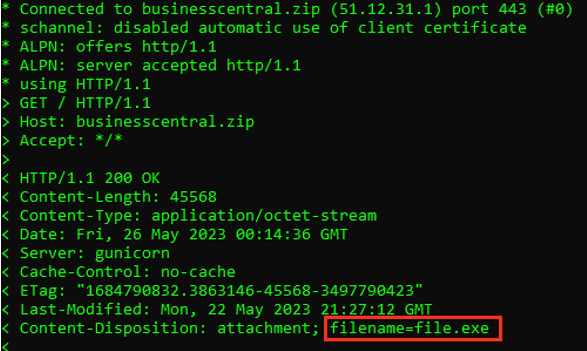 Figure 9. Malicious file served from businesscentral[.]zip