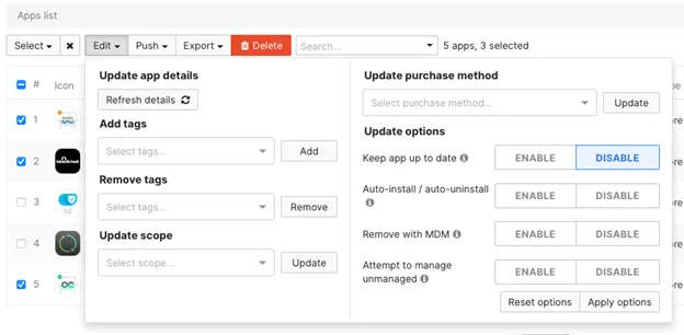 Having applications updated in the middle of an event can have disastrous consequences. Whilst there isn't an overall setting or restriction to prevent this, it is possible to do it at the application layer. And, of course, Meraki Systems Manager allowed us to do this for all apps at the same time.