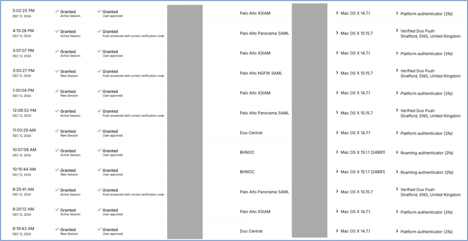 After getting all the Duo applications setup, we were able to start getting authentication requests into Duo: