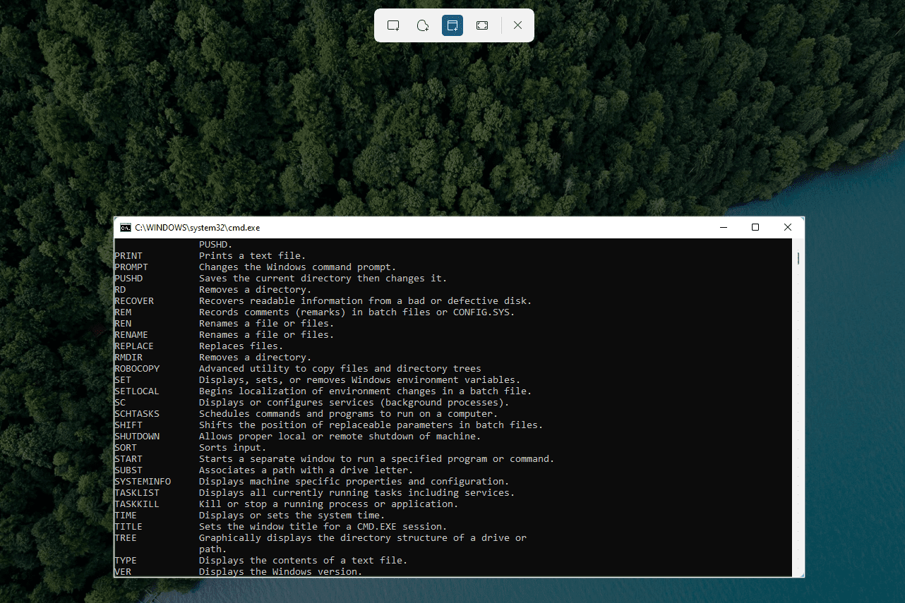 Taking a screenshot of the Command Prompt.