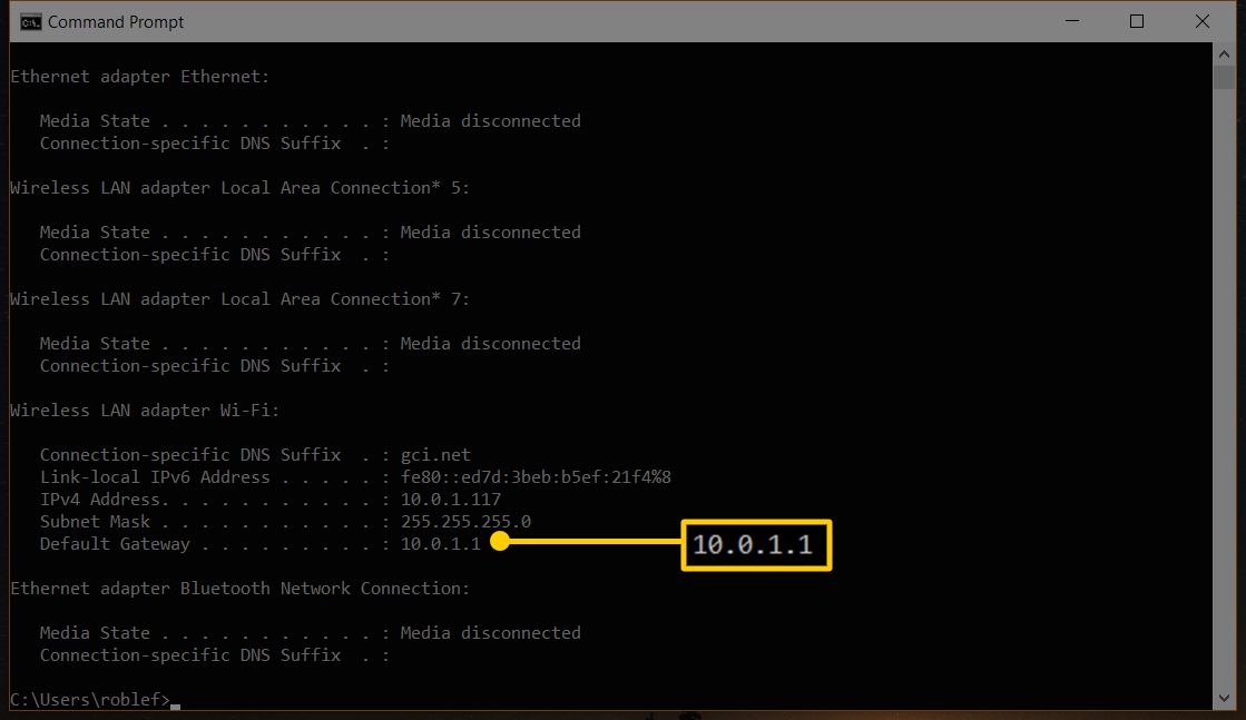 If you don't know the router's IP address, locate it using a command prompt. (The directions below apply to Windows 10 and 8.)