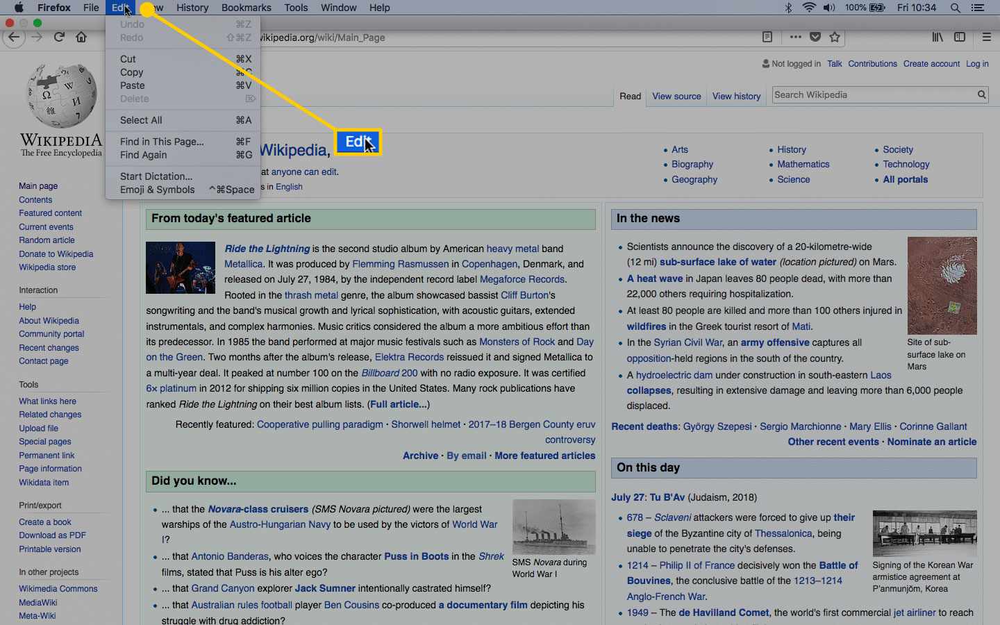 - Use the Mac Menu Bar to search by selecting Edit > Find in This Page (or Find).