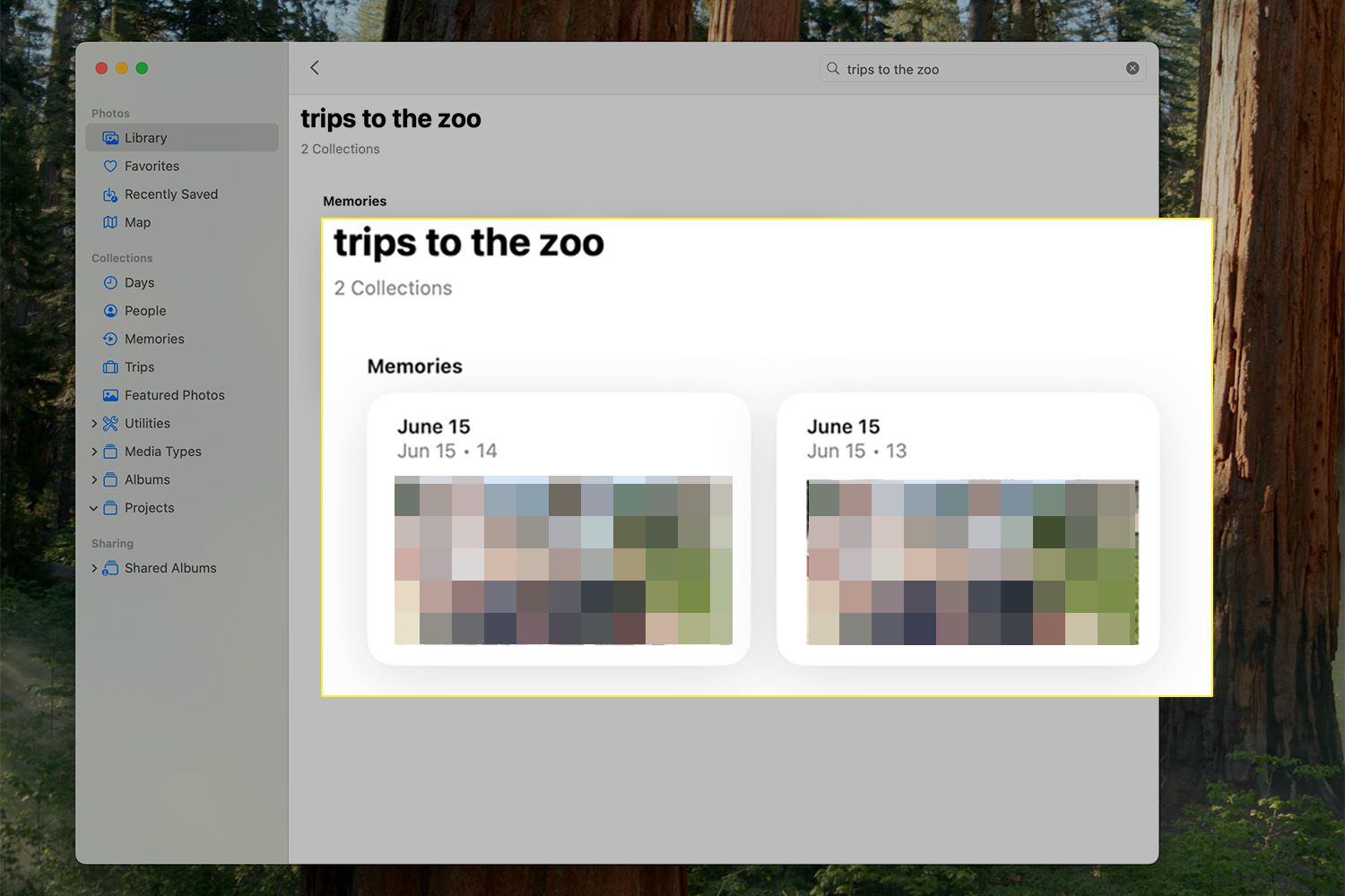 Enter descriptive text, such as "Trips to the zoo," and press Enter or tap Search.