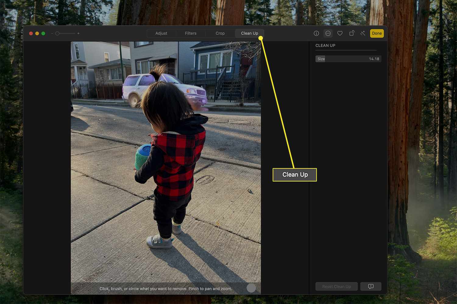 Adjust the Clean Up brush size using the slider and click, brush, tap, or circle the area to clean up or remove.