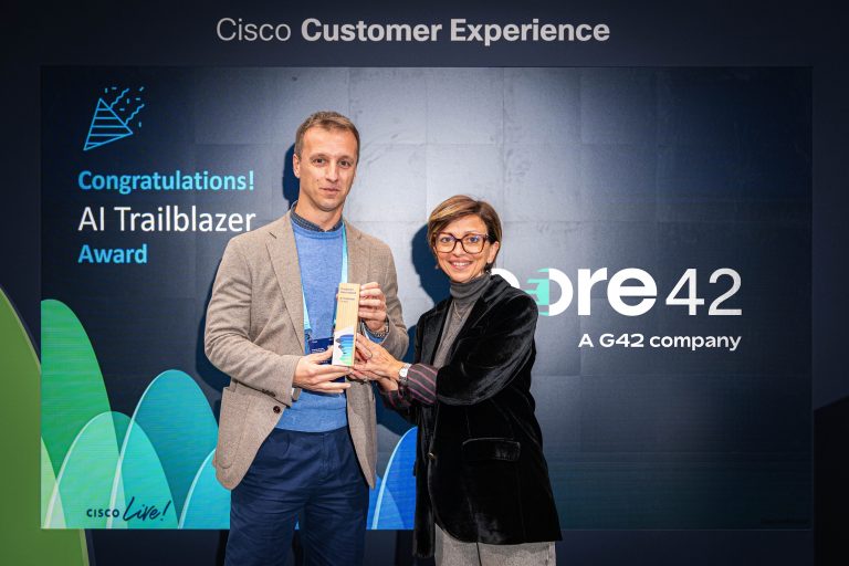 The AI Trailblazer Award recognizes a customer that has partnered with Cisco Customer Experience to successfully prepare its infrastructure leveraging AI. Core42, a G42 company specializing in sovereign cloud and AI infrastructure, collaborated with Cisco Customer Experience to build the first AI-driven data center for high-performance computing (HPC) and AI training in the Middle East. This partnership enabled Core42 to leverage Cisco Customer Experience's expertise in end-to-end planning, design, and implementation of AI-based cloud infrastructure. Led by Adrian Hobbs, Chief Technology Officer at Core42, the teams worked closely to align the infrastructure with AI demands, solidifying Core42's leadership in the region's AI and HPC ecosystem while driving large-scale AI programs and cloud solutions