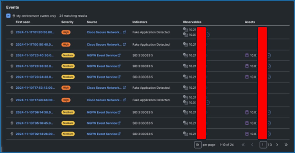 Operating in passive IDS mode does have visibility drawbacks, as we lose the ability to use TLS Server Identity to pull additional information from HTTPS connections, and general decryption is off the table. However, the firewall still provides core alerting capabilities, and the dozens of datapoints captured for each connection proved key in many investigations, most notably covered in the 'Sifting Traffic with Secure Firewall' and 'Malware Callouts from the Show Floor' sections.