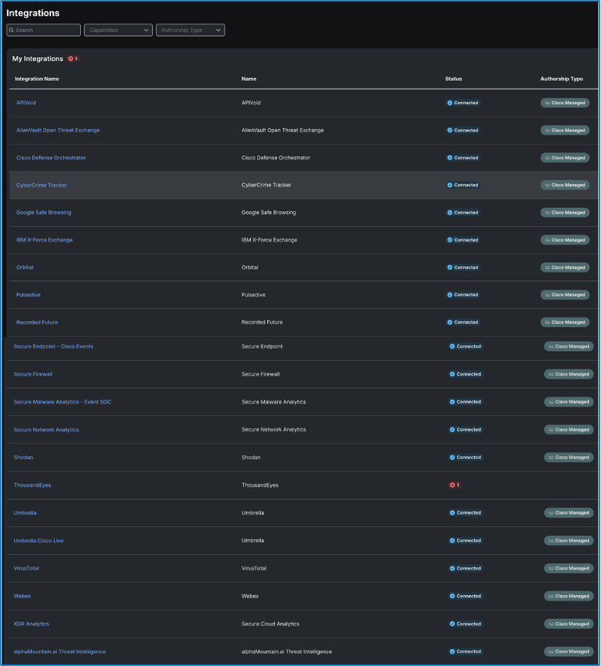 | Cisco Integrations | 3rd Party Integrations |