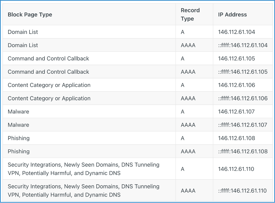 When Umbrella determines that a query is for a malicious domain, it doesn't simply refuse the resolution or return an NXDOMAIN response. It instead resolves to dedicated IP addresses owned by Cisco, and then waits for the subsequent connection so that it can return a block page. For HTTP/S connections, this is the best way to communicate to the end user why their connection failed. Umbrella reserves specific IP addresses for domain categories such as Malware, Phishing, and Command and Control traffic: https://docs.umbrella.com/deployment-umbrella/docs/block-page-ip-addresses.