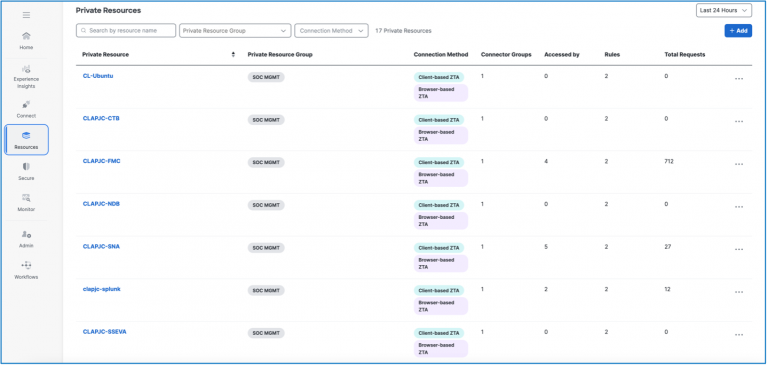 To the right of the NOC DC, we have our cloud-based products. Under the NOC DC there is a green box with the SOC analysts in it. This is not only where we sit but also where we connect to our internal resources using Secure Access. We used the Secure Access Resource Connector to connect to internal resources like the Firewall Management Center (FMC) and Secure Network Analytics (SNA). This is further explored in the next section of the blog.