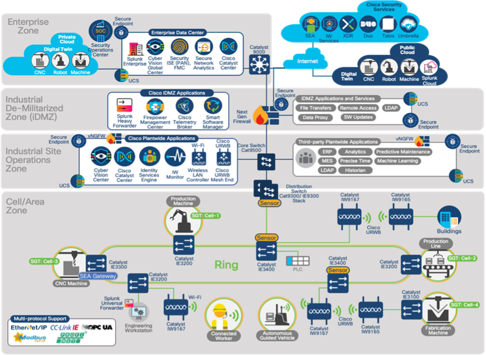 Many industrial operations rely on networks provided to them by their automation vendors. These default networks often focus on the immediate, localized needs of specific equipment or processes. While they may be good at their intended function, they frequently fall short when addressing the broader challenges of scale, security, and innovation in modern industrial environments. Such networks may not consistently offer the level of cybersecurity needed to protect the entire operations and may also hinder quick adaptation to changing business needs, incorporate new technological advancements, or offer the level of performance required for critical industry initiatives such as utilities grid modernization or in manufacturing Industry 4.0 initiatives, including AI.