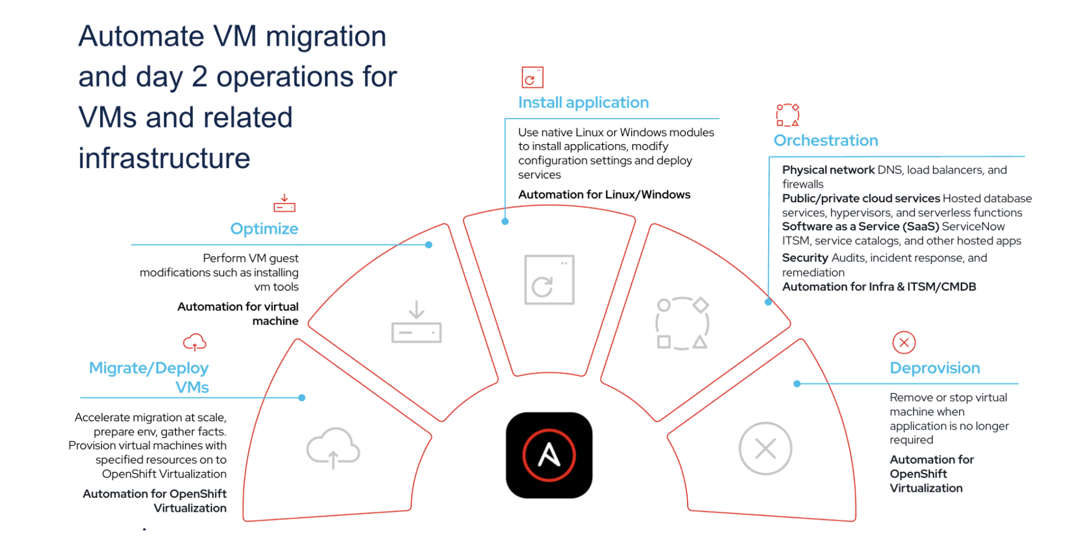 Red Hat and Cisco are offering an initial set of Ansible Validated content, supporting the CVD for FlexPod Datacenter with OpenShift Virtualization and Ansible Automation Platform, targeting the following customer use cases: