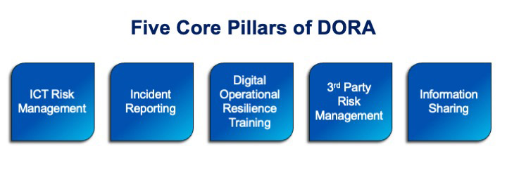 Under DORA, financial institutions have five key pillars of responsibilities to ensure their operational resilience: