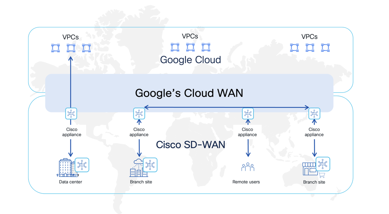 The integration with Google's Cloud WAN solution provides Cisco SD-WAN customers secure and seamless access to Google Cloud workloads. And by leveraging the global reach and reliability of Google's Cloud WAN, enterprises can establish robust network connectivity with a consistent security posture.