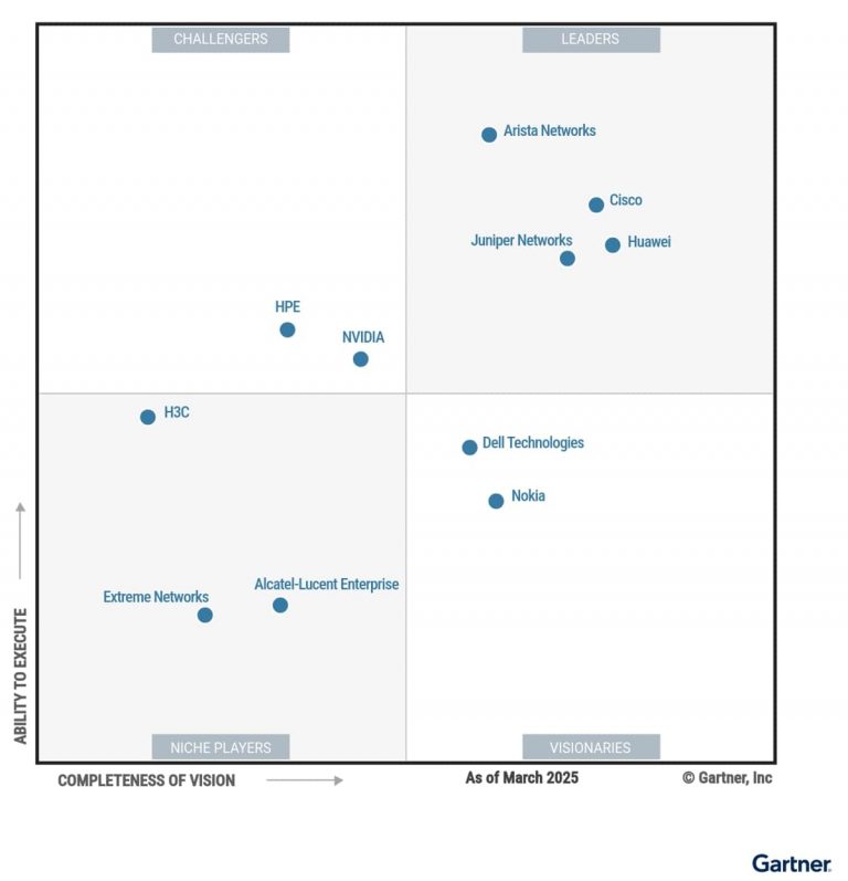 Gartner, Magic Quadrant for Data Center Switching, Andrew Lerner, Simon Richard, Nauman Raja, Jorge Aragon, Jonathan Forest, 31 March 2025 GARTNER is a registered trademark and service mark of Gartner, Inc. and/or its affiliates in the U.S. and internationally and is used herein with permission. All rights reserved. Magic Quadrant is a registered trademark of Gartner, Inc. and/or its affiliates and is used herein with permission. All rights reserved. Gartner does not endorse any vendor, product or service depicted in its research publications, and does not advise technology users to select only those vendors with the highest ratings or other designation. Gartner research publications consist of the opinions of Gartner's research organization and should not be construed as statements of fact. Gartner disclaims all warranties, expressed or implied, with respect to this research, including any warranties of merchantability or fitness for a particular purpose.