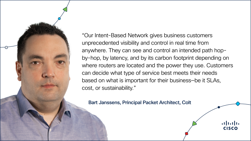 A: Bart Janssens, Principal Packet Architect, Colt-The NaaS innovation journey on our IP network started in 2021. As the biggest pan-European aggregator, we needed simplicity, capacity, and scalability, while managing CapEx and OpEx and ensuring the power efficiency of our infrastructure. This led us to Cisco Routed Optical Networking. We were the first service provider to adopt it on long distance core spans.