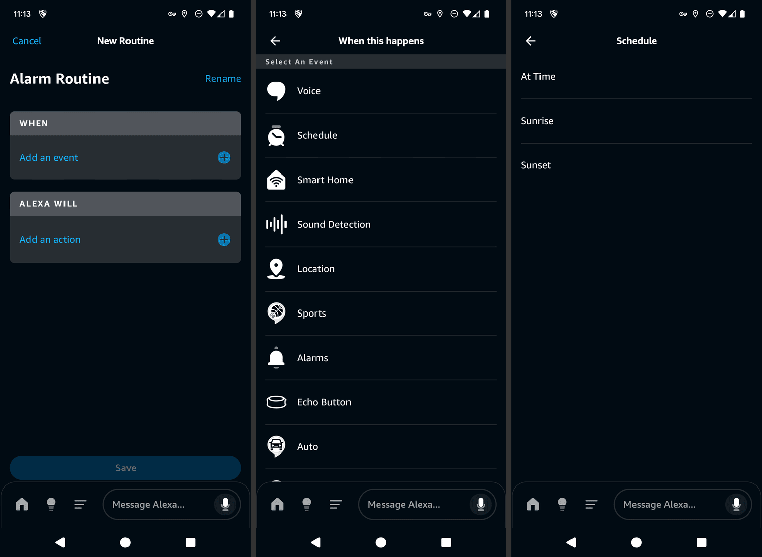 Maybe you're away from your Amazon speaker or simply want an alternative to the above. Rather than using the Alarm feature, you can set up an Alexa Routine to play what you want, when you want.