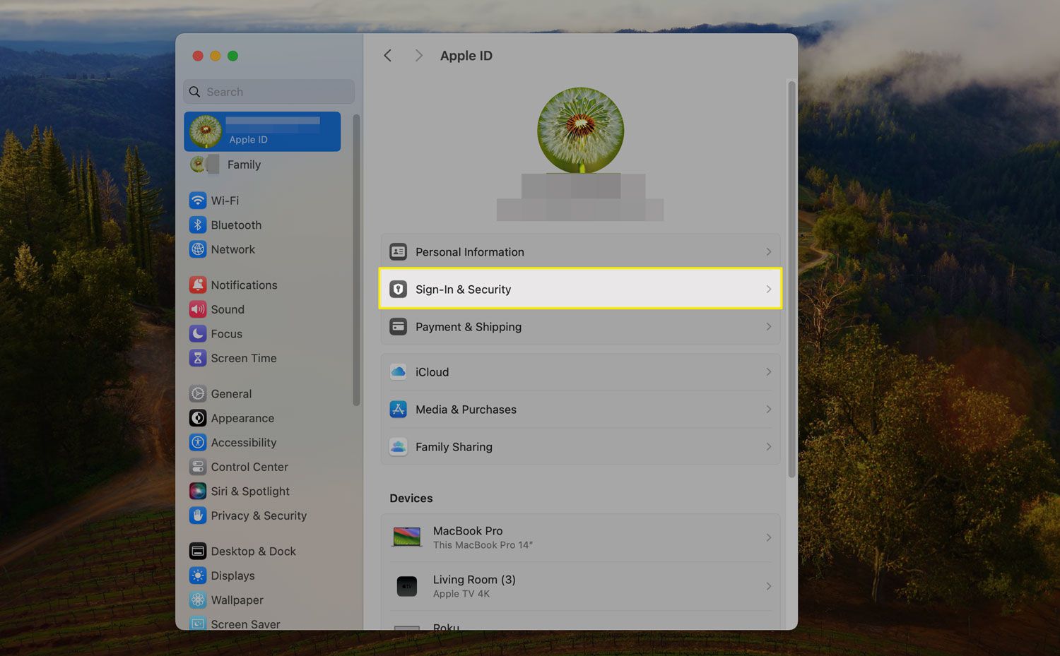 In some versions of macOS, this option is called "Apple ID."
