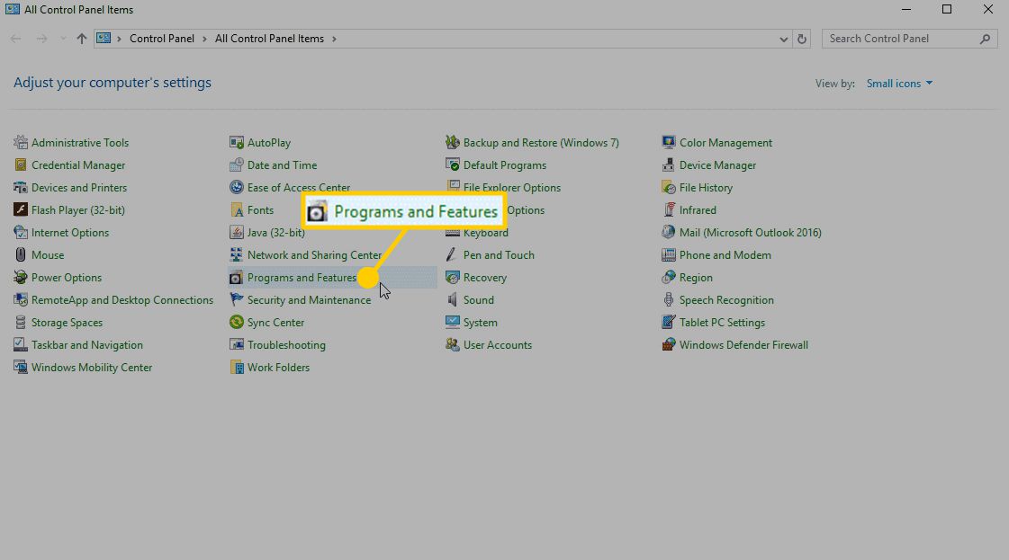 Choose Programs and Features.