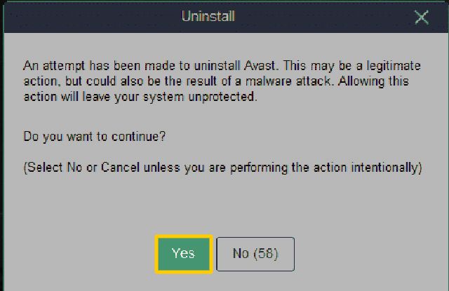 You'll see a confirmation window asking you if you really want to delete Avast. Select Yes.